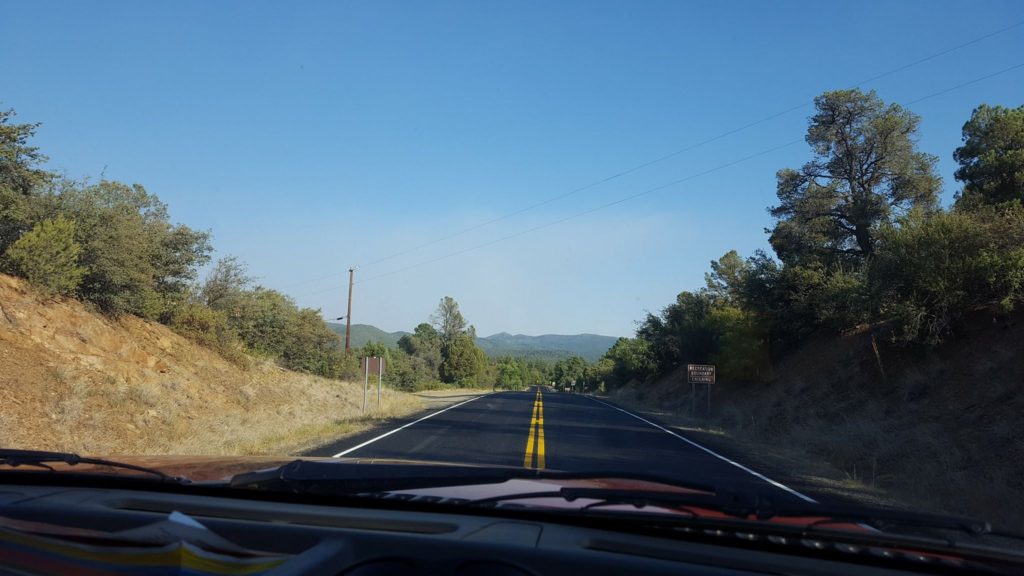 The picture out over the hood of Patrol 80 was taken at about 5pm and shows no dark gray, churning, violent looking smoke (scroll to our post from Tuesday to see the ‘bad’ smoke).
